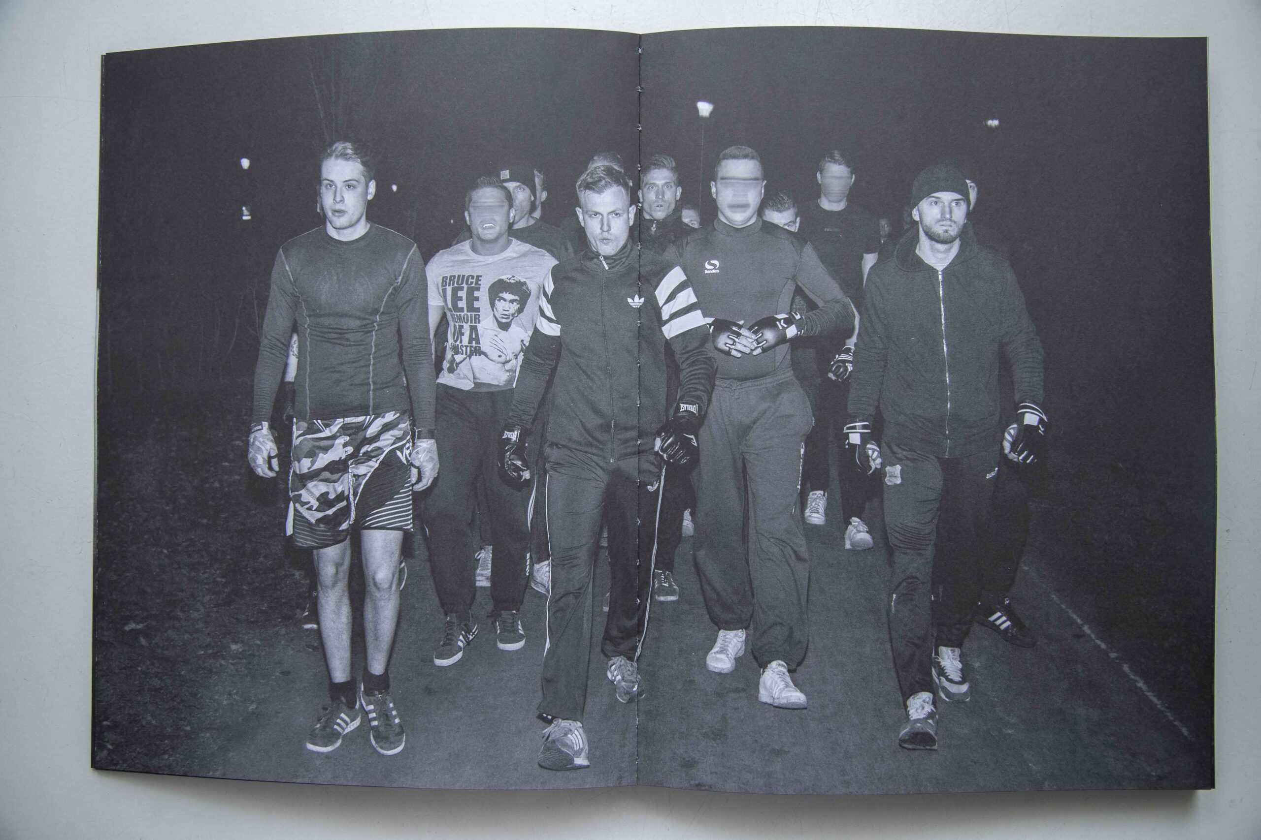 “In 2016, I gained access to an underground scene of illegal “free fights” between rival football hooligan groups. These fights take place deep in forests, far from public view. The rules are minimal: two groups fight for the colours of their club until one side can no longer continue. The confrontations are short, intense, and extremely violent — yet once the fight ends, the aggression dissolves. Hands are shaken, beers are shared, and everyone returns to everyday life.